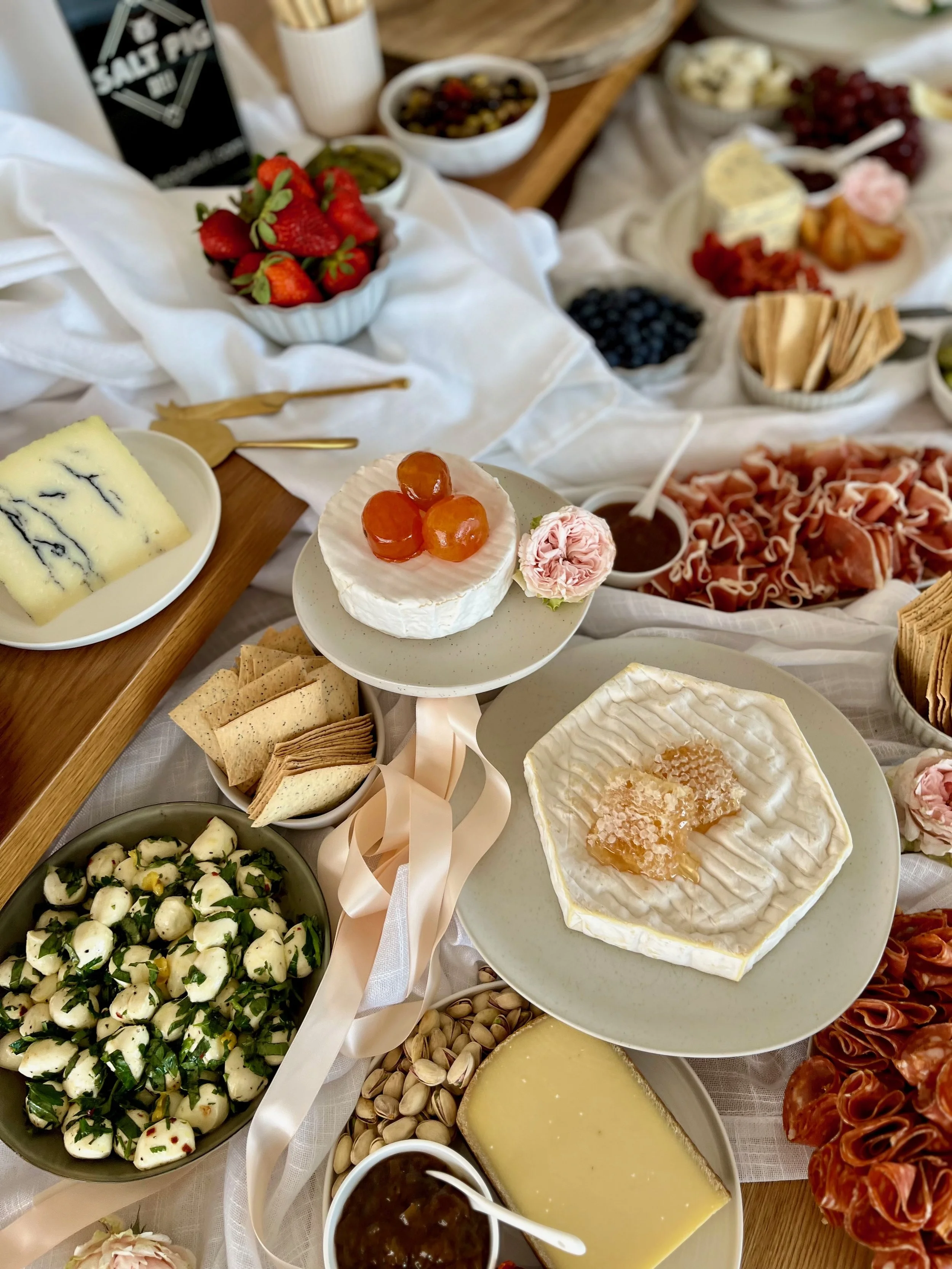 Our beautiful grazing tables, filled with the finest quality cheeses, cured meats, fruits, fresh baked breads, crackers and other antipasto accompaniments enhance any event, from casual get-togethers to formal parties. They offer a wide variety of flavours, textures, and colours, encouraging guests to socialize and enjoy a shared food experience, making gatherings unforgettable.